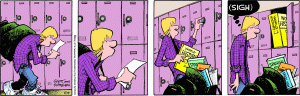 Back to school cartoons are starting to show up in the daily comics.  Spring and early summer garden debris are showing through later summer growth, beckoning for a clean out.  I’m working on Halloween and Christmas events.  We’ve started to stockpile wood for the stove.